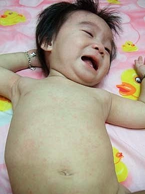 有時候滿臉長得像個大花臉。偶爾,門診中會遇到心急如焚的家長,二更半夜抱著全身長滿疹子的寶貝前來急診就醫~