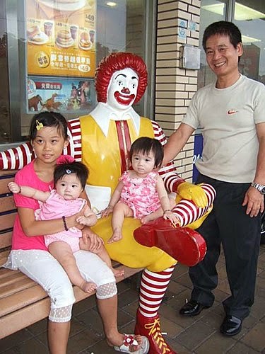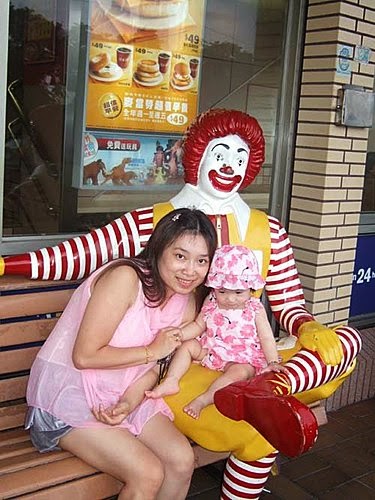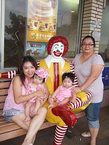 麥當勞叔叔~我們有來跟你彭場喔!雖然我們只點了薯條,蛋捲冰淇淋,可樂~
