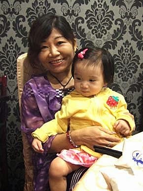 上菜的時候..開始睡~~~最後甜點來的時候,我才起床~讓媽咪"爽快"的吃大餐!