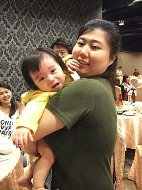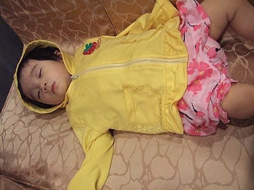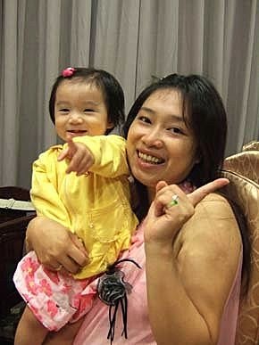媽咪吃完飯飯很開心~~我睡飽飽也很開心~~媽咪說:我們母女倆的默契,就是要這樣配合下去喔!