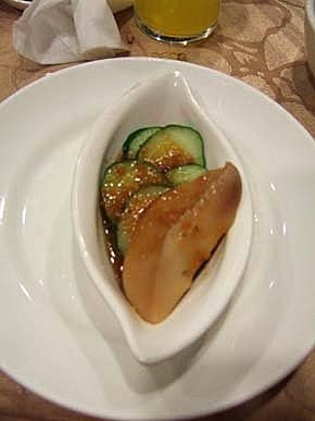 柳橙汁無線暢飲~我喜歡!第一道的菜色*和風鲍貝*一人一小盤,挺精緻的~