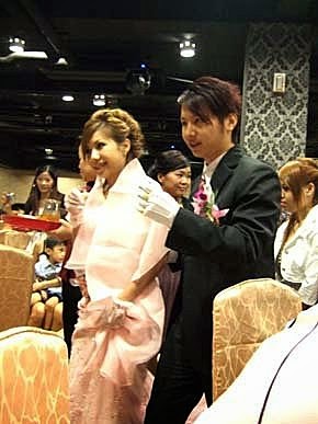 不過...怎麼沒有打一盞燈光給,走進門的新人呢?烏漆媽黑的..人家想看新娘子啦!
