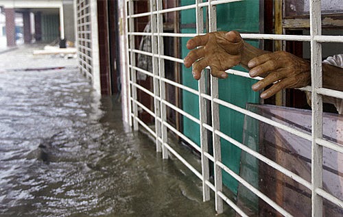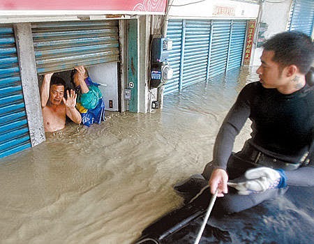 2009年8月9日,臺灣屏東。伸出等待救援的手...