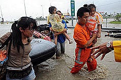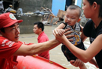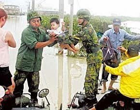 救難人員與洪水搏命