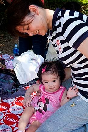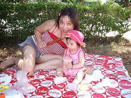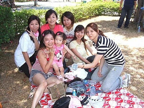 耶~~~我們第一名,媽咪帶了野餐墊,我們躲在樹陰下乘涼,吃香腸配木瓜牛奶~