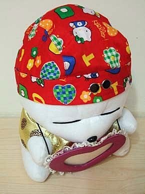 紅色洞洞帽$100元 橘色格子帽$100元  彩色點點帽$100元 哇~我是百變女郎啦!