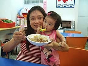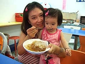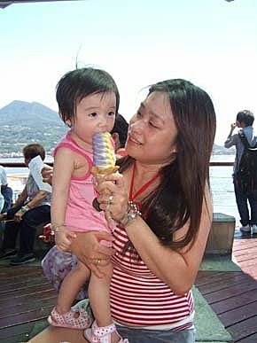 我跟媽咪一起分享冰淇淋,啊~~~好冰!好涼喔!