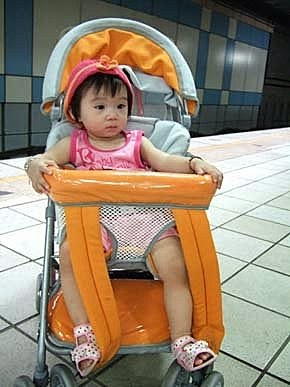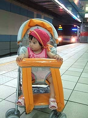 怕寶貝受不了,曬暈怎辦勒?只好約自己的好友,推著娃娃車,吹著冷氣坐捷運~