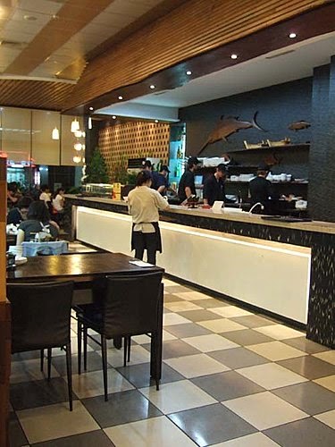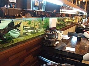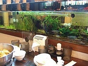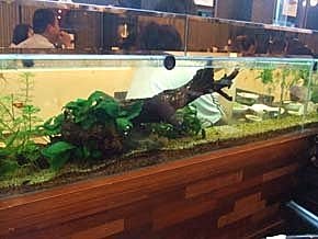 座位中間用一整排的"魚缸"過隔閡,超特別的設計,讓人一邊享用美食,一邊欣賞~一點也不無聊..