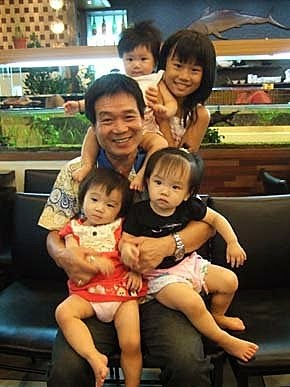 老爸和四個小孫女,好在..老爸思想開放,沒有重男輕女的觀念,所以..各各疼愛~