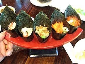 綜合手捲組:1組五份,共點了三份,現作的很好吃,要馬上吃,要不然海苔會軟掉喔!必點之~