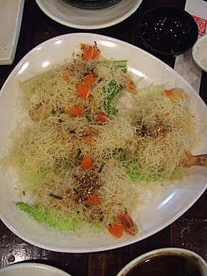 蘿蔓天蠶蝦:2大盤.魚卵+生菜+炸蝦+油炸的麵線,酥酥脆脆的口感,必點之~