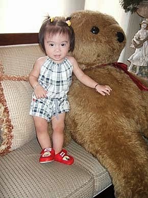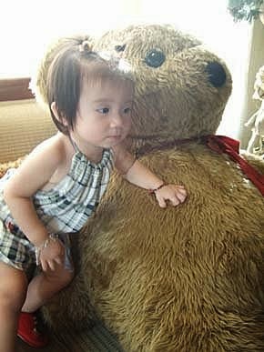 寶貝第一次看到這麼大的熊熊,興奮的撲上去了~