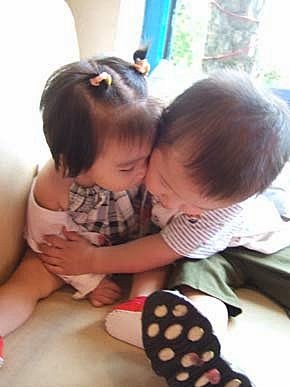 云云:哥哥..趁媽咪去洗手間,咱們來玩親親~ 俊宇:不要啦~人家會不好意思,我們牽小手就好了!