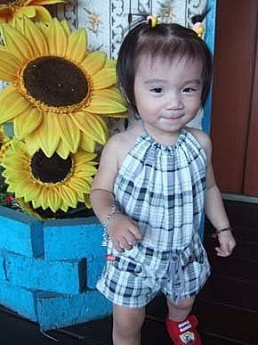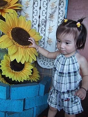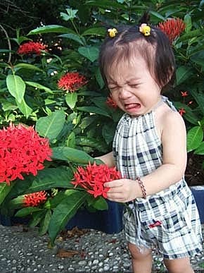 花是用來"欣賞"的,不能破壞~被媽咪小小唸了一下...就哭成了淚人兒~真是..