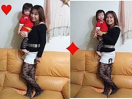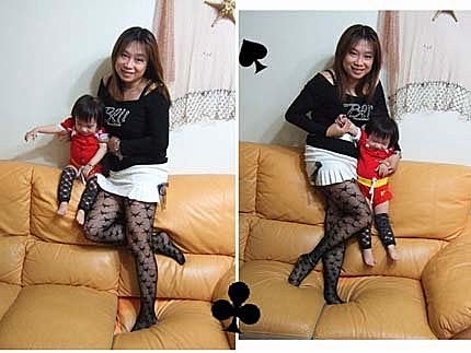回到家~心血來潮...意外找到了以前裝扮用的"袖套"穿在寶貝的腿上,嘟嘟好~變成了性感小網襪....呀呼~真是滿意自己的傑作!