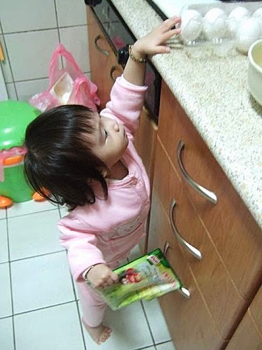 簡單的作幾道菜,就花了我一個多小時,原因是.....小蘿蔔頭一直想"幫忙"