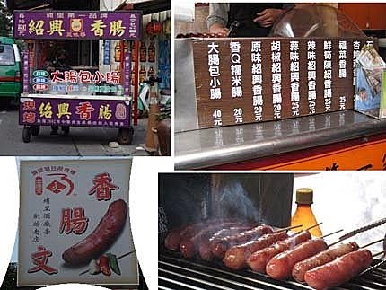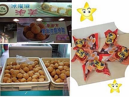接近中午的時間~大夥都餓了起來...一窩蜂的跑去買"紹興酒香腸"吃...我跟老爺沒興聚,有興趣的是~冰淇淋泡芙和紹興酒蛋!