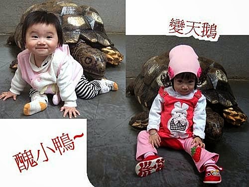 好熟悉的小烏龜~我小時後(10個月)也有坐在他的背上ㄟ!