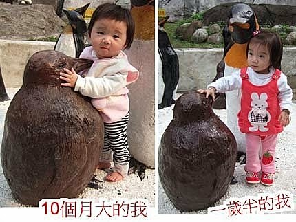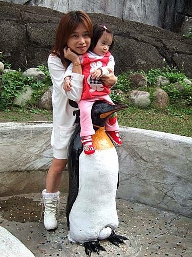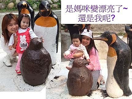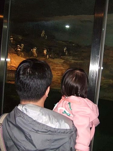 爸比抱著我看企鵝,媽咪趕緊拍下這"父女情深"的畫面~