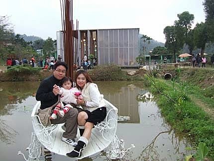 這個帆船椅是提供給遊客拍照的,後面還有小池塘,從這個角度拍過去~整個紙教堂都入鏡,超美的景色!