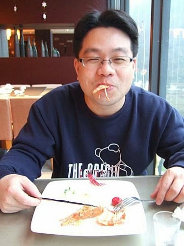 我說:老爺呀!吃個小龍蝦...有需要這麼"得意忘形"嗎?瞧你...開心的哩!