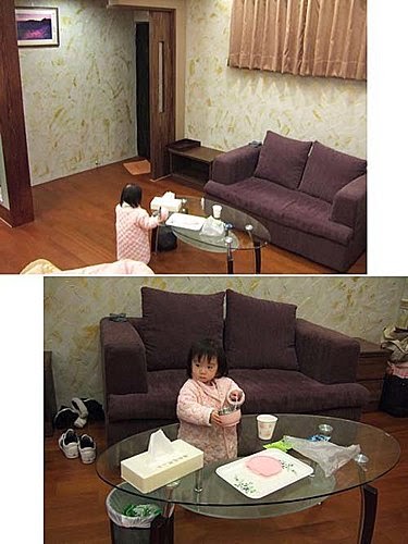 寶貝...來到新奇的地點,好奇的心一擁而上,到處走...到處看.....一點也停不下來~晚上要哄她入睡時,還硬是掙扎了"幾秒"後~馬上累到"暈倒"