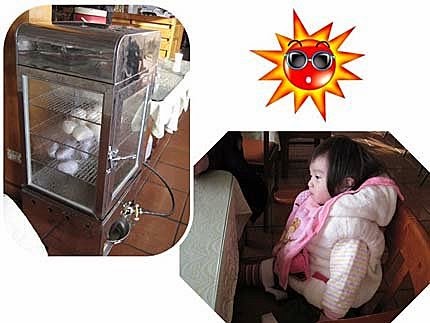 飯店內的早餐,雖然種類不多...但足夠飽餐一頓了,還提供了現蒸饅頭+愛睡的小孩一枚!