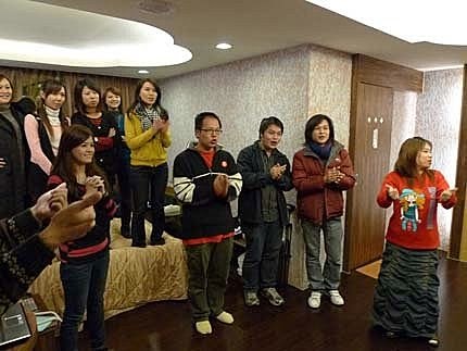 不管是眷屬~夥伴~所有的團員通通都有參予,一個也沒少喔!瞧...大家多麼認真的在練習~當然..手勢是我發明的,就由我來帶動了!