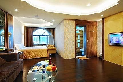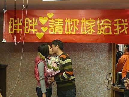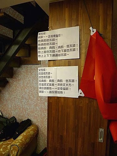 求婚的場地~五樓八人房(樓中樓)為了讓場地擴大,還破壞了飯店的布置~把整座的沙發撤走到隔壁房間借放呢!求婚的甜蜜小佳偶~