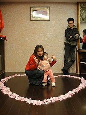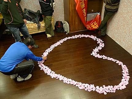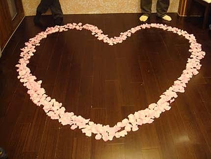 最後~大家合力把玫瑰花瓣,鋪成一個大大的愛心~分工合作的感覺真好!