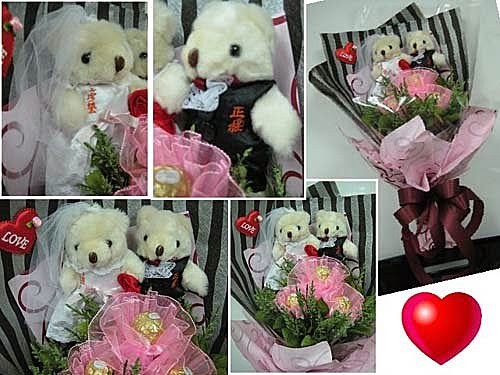 求婚花束,可是我用心上網找的喔~還特地兩個星期前預訂,在小熊衣服繡上了男女主角的名字,花束雖然不大,但是意義無價!