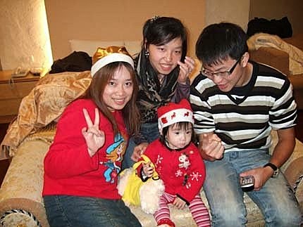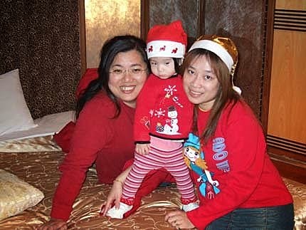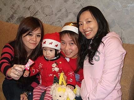整個造型花不到幾毛錢,就充滿了聖誕節的氛圍~瞧...看她笑得如此開心!就知道...她很滿意呢~