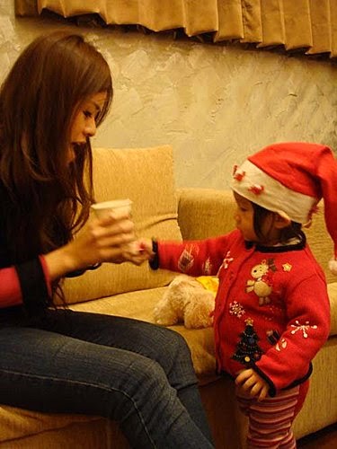 今晚~也偷偷安排了小節目,讓我家的小天使~扮演"聖誕小公主"去每一間房門敲敲門,送糖果~送祝福呦~