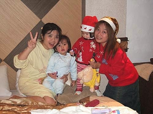 來~來~來~通通都有份,小姐姐拿到糖果最開心了!咦~少了一個爸比呢?原來正在泡澡,沒有穿褲子~躲在浴室不敢出來呢....