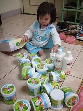 歐呼~媽咪買了好多名產回來喔,我來幫忙分類....這個要送給阿姨.....這個要給舅媽...這個要送給ㄚ嬤.....