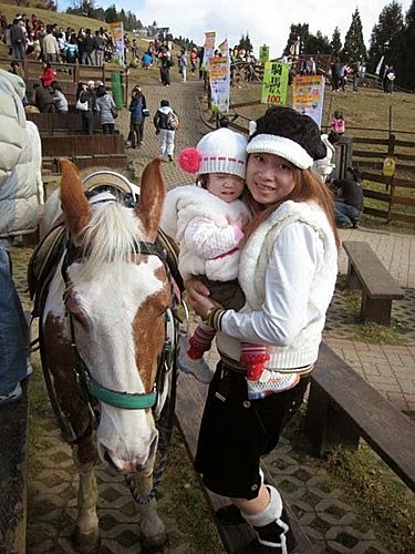 寶貝第一次跟馬兒這麼近距離的接觸,居然會害怕ㄟ...看來~她真的長大了!看得懂...什麼是動物啦~