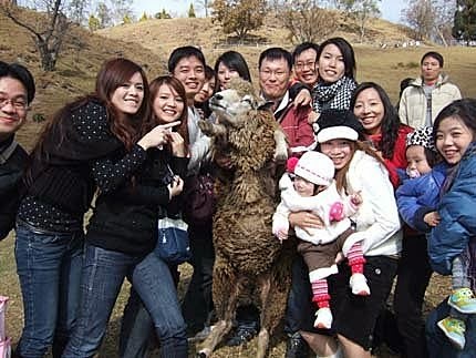 耶~來這裡跟羊咩咩作親密的接觸,都玩得不亦樂乎~來張勝利的大合照!