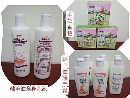 綿羊油全身乳液$300(二罐) 羊奶蛋捲$200元(二盒) 綿羊油護手霜$100元(二瓶)