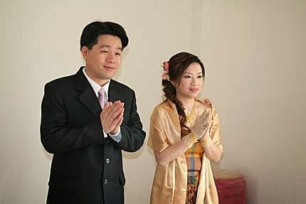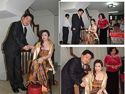 聘金:分為大/小聘,數目應為雙數,並且用紅紙包裝,一般女方不收全數退還或只收小聘,大聘退還(紅紙收下,當場退還聘金)。