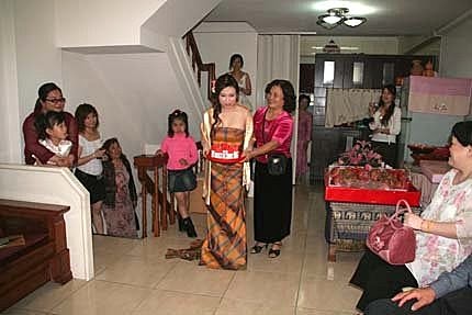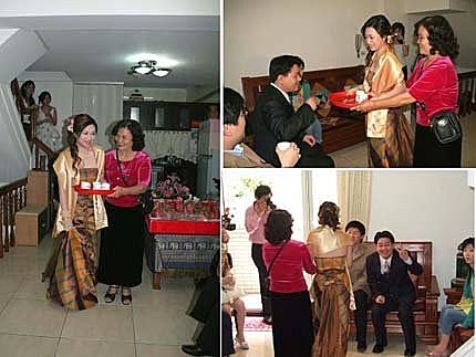 介紹:(1)男方親友依序魚貫入女家,媒人正式介紹雙方親友;先介紹男方給女方。