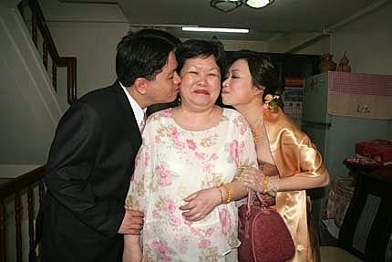 今天只是我的文定之喜,但是...攝影師要求老媽說些祝福的話時,她卻哽噎的說不出話來~讓我兩個女伴,也抱著我狂掉淚....有這麼感動嗎?