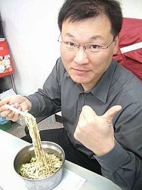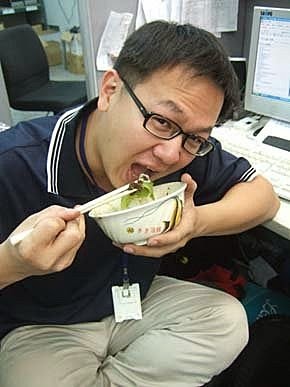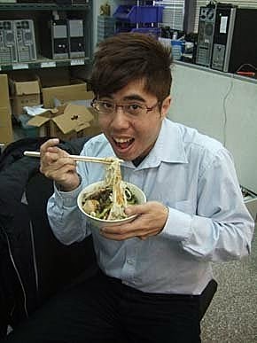 吃第一碗,大家都直呼}}好吃~好吃~老大不斷的要求,他要最大碗,找不到他滿意的"尺寸"只好用{鍋}代替~他可是挑戰了{兩鍋}的實力呢!