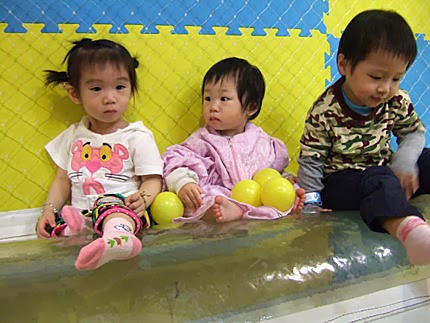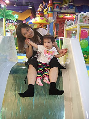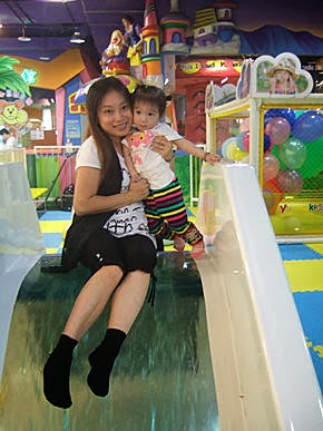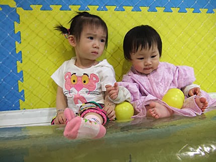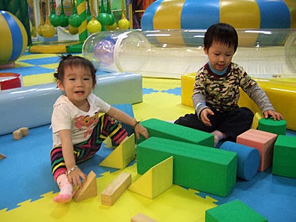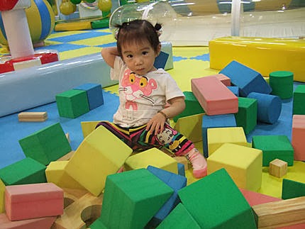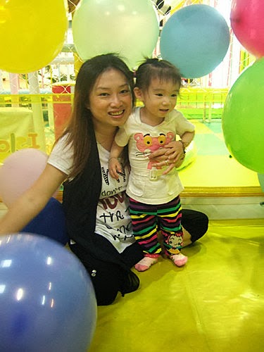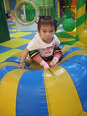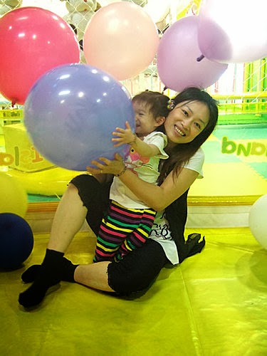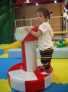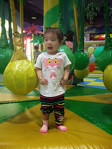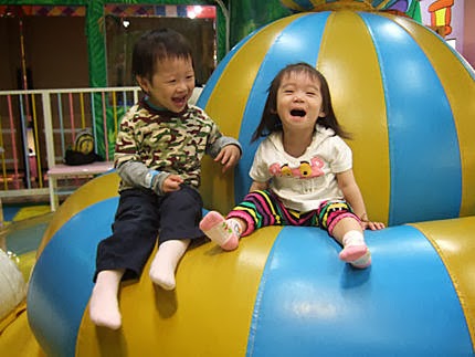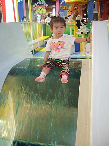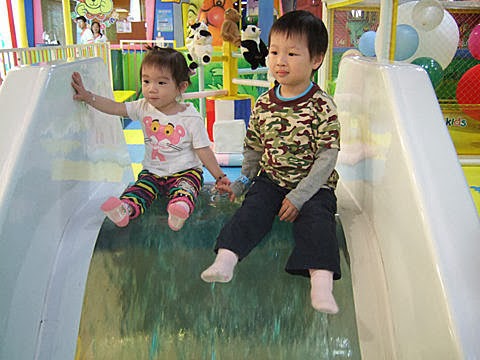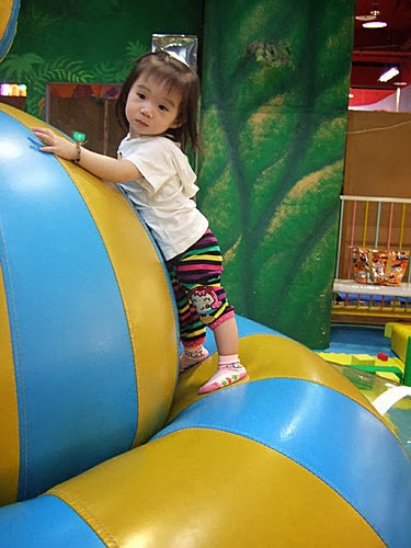 下午的時候~進來一大群的"大朋友"年紀約幼稚園大班~國小生,玩法粗暴又過動....我跟麻吉適情況不對,趕緊帶著小蘿蔔頭逃離現場嚕~