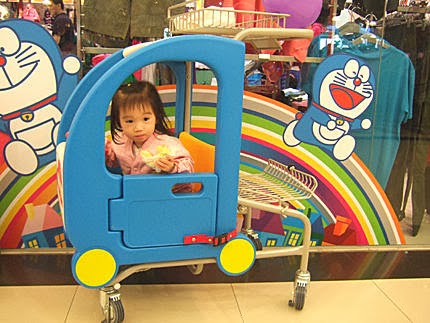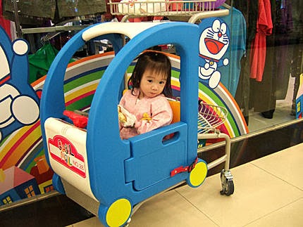 環球購物中心有提供可愛的{車車造型推車}免費租借喔(押身分證)~不過....一定要一大早來,要不然是借不到的~
