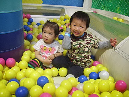 球球游泳池:發展小朋友手臂的大小肌肉及訓練手眼協調,從氣墊上躍進球池中的膽量與勇氣培養!!