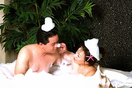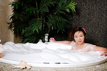 可別以為我們沒有穿喔~我們可是穿了泳裝護身呢,畢竟攝影師是男的,人家也會害羞呢~攝影師說:我們像是在拍溫泉會館的廣告!