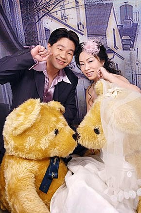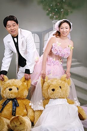 這幾張走俏皮路線,兩大隻的泰迪熊~一樣是帥老弟贊助的道具,熊新娘的禮服與頭紗,是我的造型師幫它搭配的呢!