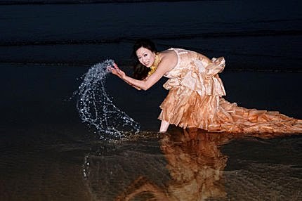 攝影師很會用花來取角度,第二張戲水...我穿的是{白色馬靴}感覺像是包了石膏的腳,攝影師怎沒提醒我,光腳會比較好些吧!