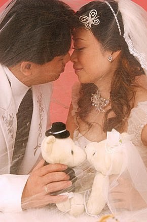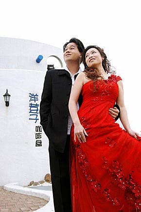 白紗蓋頭是我要求的,但是..攝影師覺得效果不好,拍沒幾張就放棄了!但是...這張卻成了我跟老爺的最愛!傳統的貴妃椅,只能拍出正統的婚紗照!